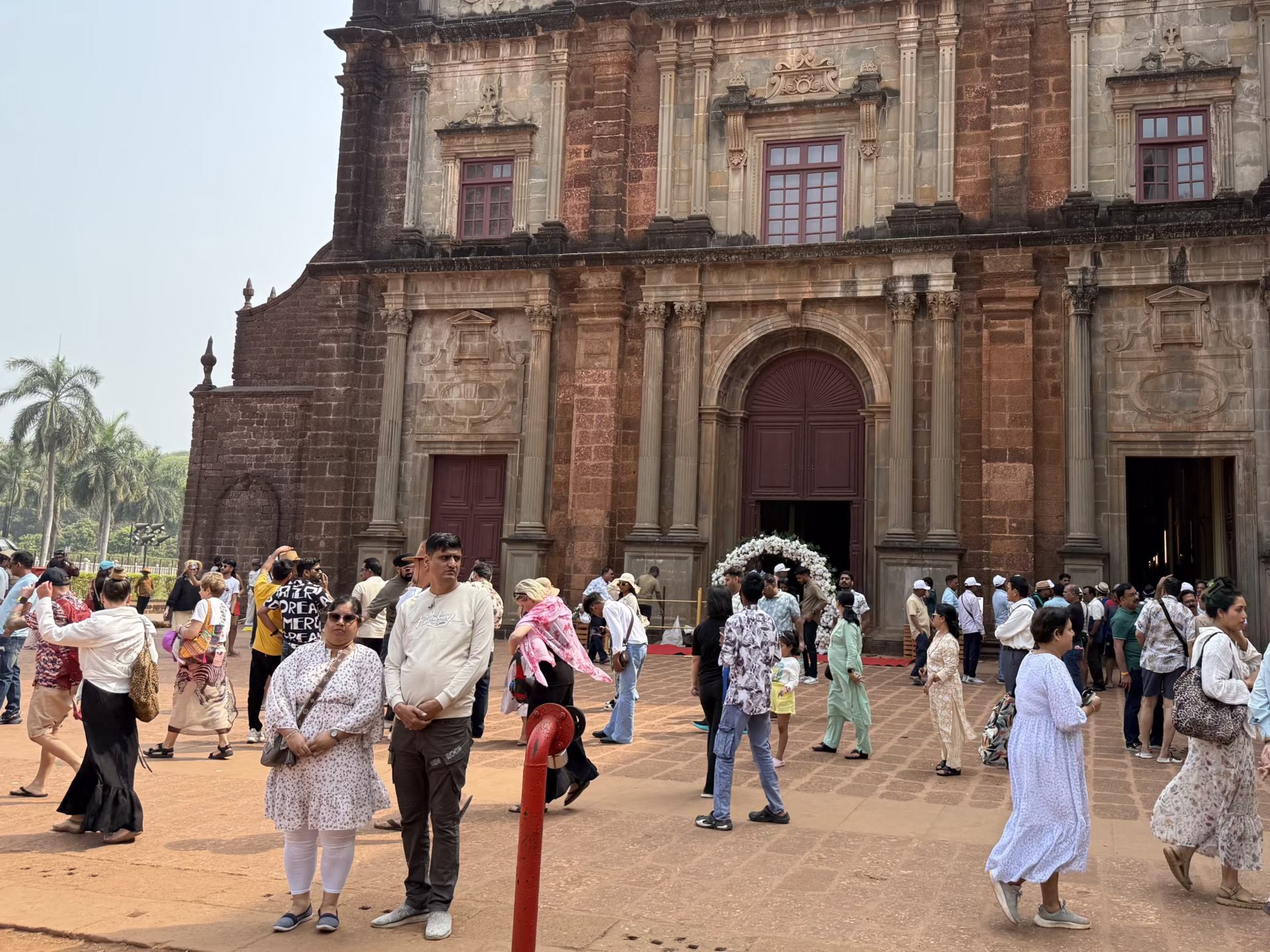 Der in Europa wie in Asien hoch verehrte Schutzheilige Goas, San Francisco Xavier (bay: Franz Xaver) liegt in der Basilica de Bom Jesus. Sie wurde ab 1594 errichtet und es herrscht hier reger Andrang.