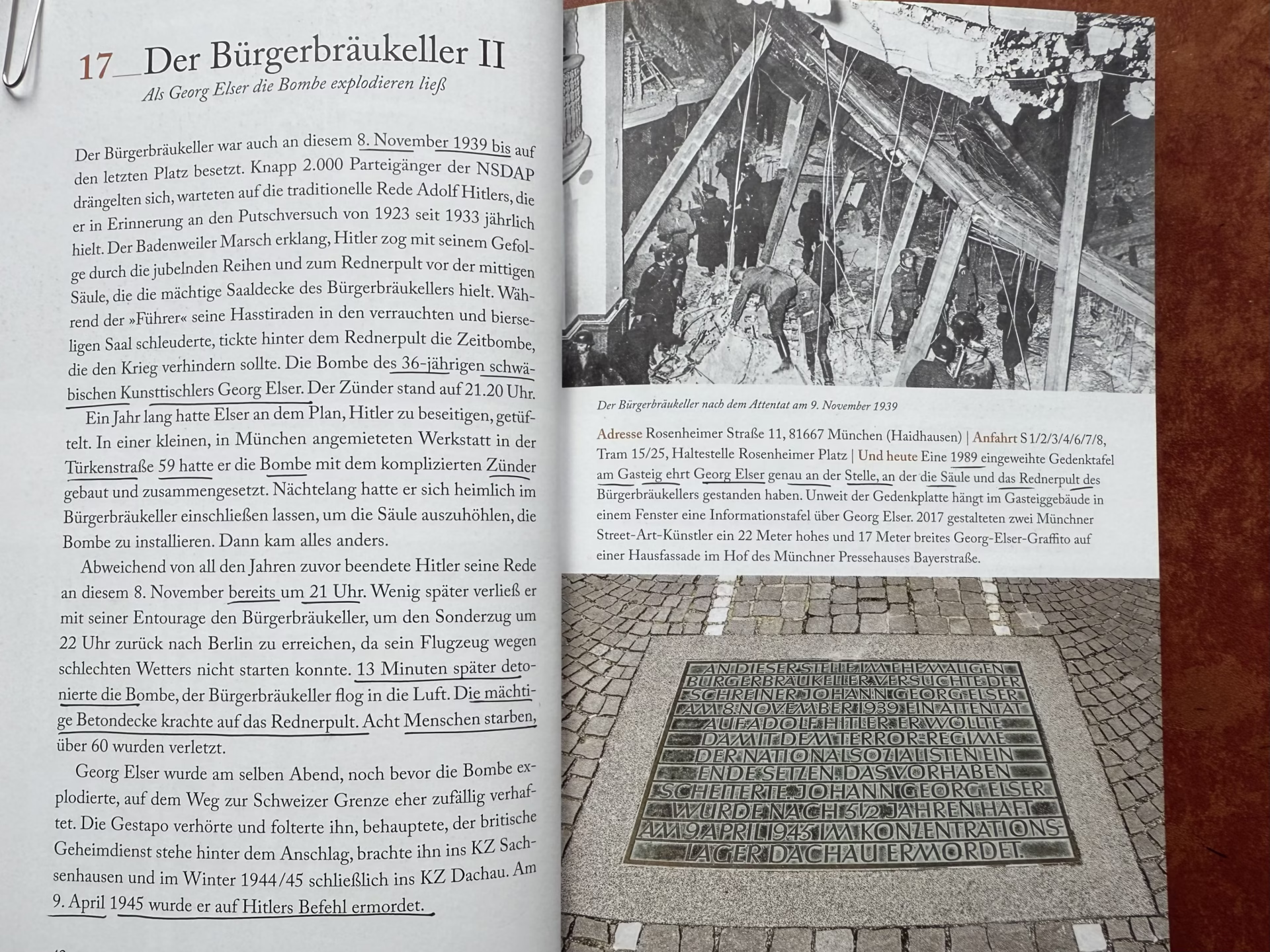 Die Auswahl dieser Orte der Nazi-Zeit ist beeindruckend und Rüdiger Liedtke gelingt es, jeden einzelnen Text sehr kenntnisreich und lesenswert zu gestalten. Natürlich vergisst er nicht die Orte des Widerstands, zum Beispiel das Priesterhaus an der Asam Kirche oder die Wohnung Georg Elsers, der am 8. November 1939 im Bürgerbräukeller fast Hitler weggesprengt hätte.