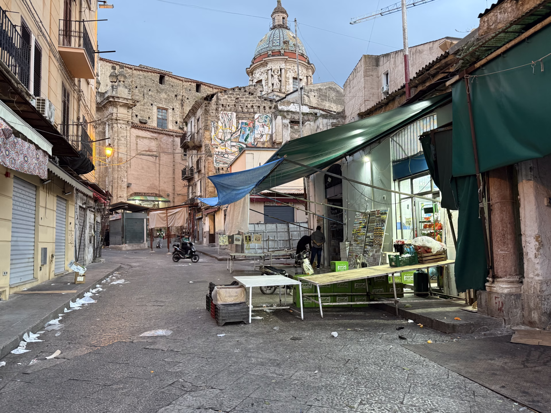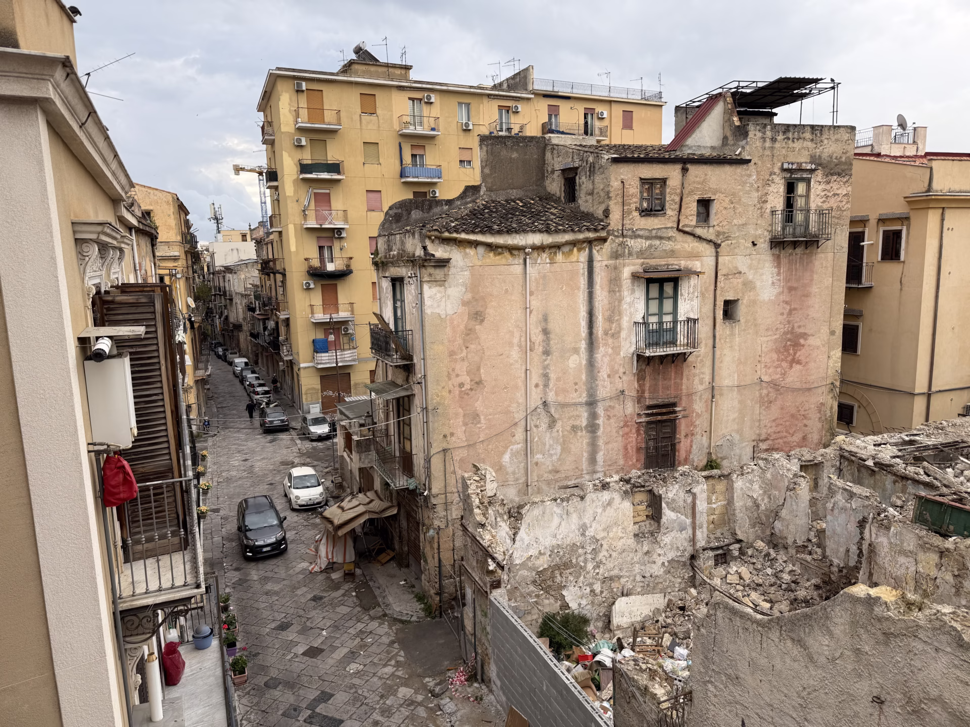 Aber man sieht auch im Hintergrund des Fotos ruinöse Häuser mitten im Altstadtviertel Ballarò. Mich beschäftigt tatsächlich bei aller Italien-Begeisterung, wie ich die Falle des verklärten O Sole mio, dolce Vita e Amore vermeiden kann.