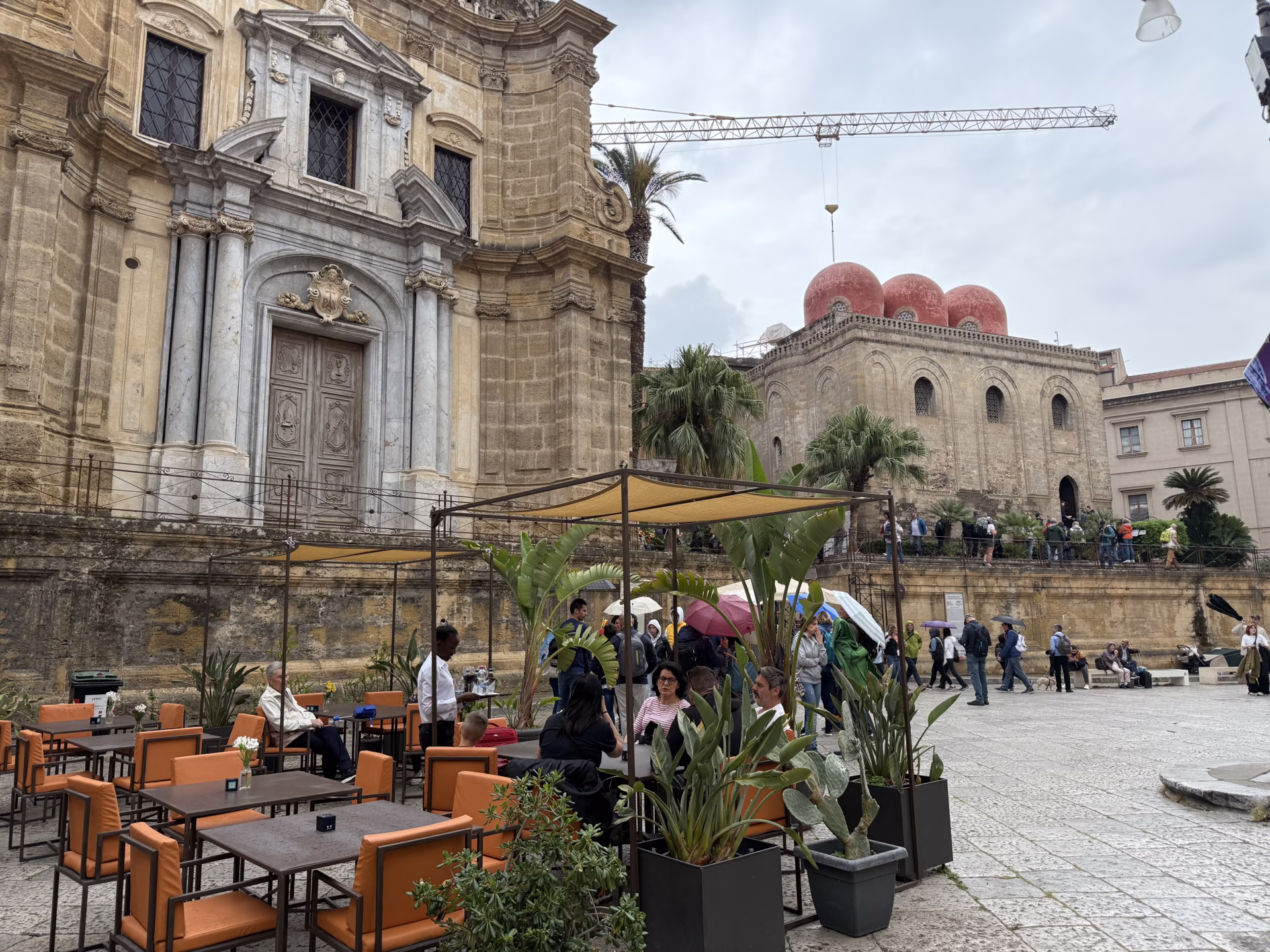 Doch Jahrzehnte des Niedergangs und der Wirtschaftskrise sind nicht von heute auf morgen überwunden. Unzählige prächtige Paläste warten auf ihre Rettung. Die Touristen erfreuen sich gerne an der „Ursprünglichkeit“ und Stimmung, so wie man sich an den Handwerkern im arabischen Bazar freut. Alle wollen mittags auf den Markt von Ballarò, der schon den Markt Vucciria abgelöst hat (weil dort schon viel renoviert wurde). So wird auch dieser Markt der Einheimischen gerade zur Kampfzone der Touristen, die eben essen und trinken wollen, also ja, genau wie in Marrakech. Doch am Abend bekommen die ärmlichen Gassen schon etwas unheimliches, da sind die Touristen doch lieber in ihren schicken Hotels.